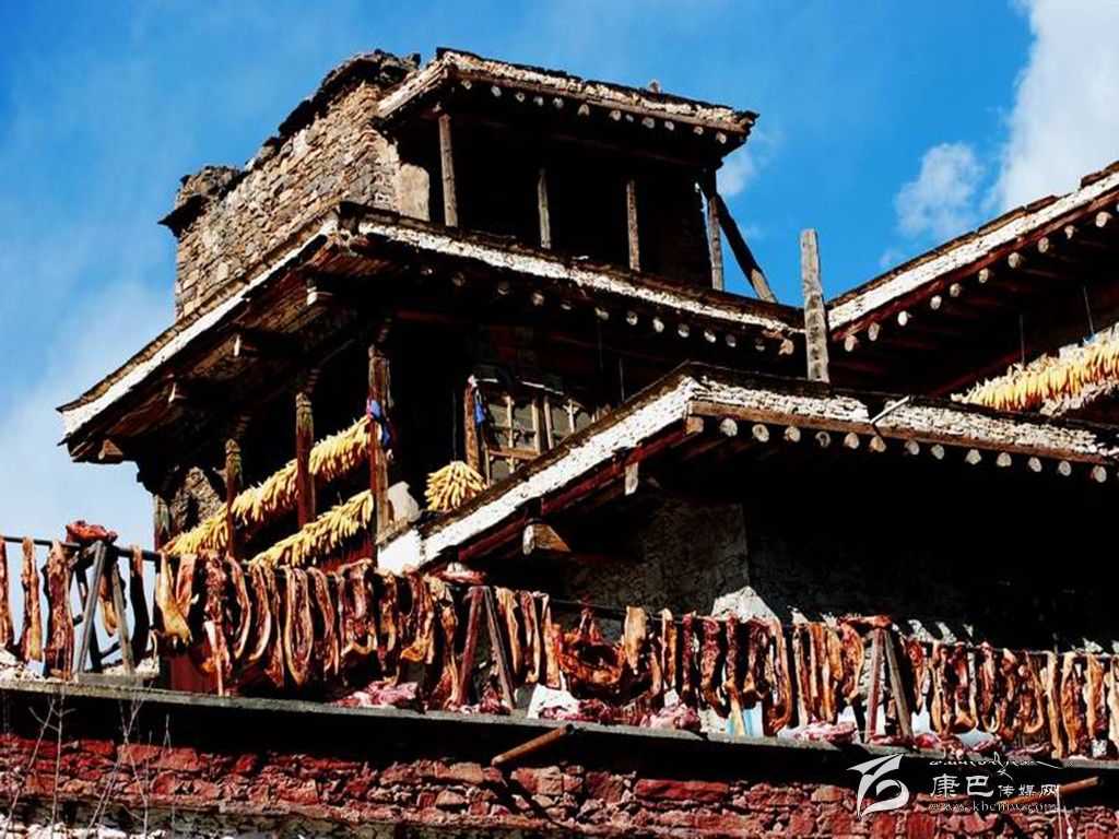 嘉絨藏族年到來(lái)之前幾天,丹巴藏寨格外耀眼美麗。寨房的主人們都依照傳統(tǒng)習(xí)俗,以當(dāng)?shù)氐?ldquo;白泥巴”為主要原料,通過(guò)配方煎制成白色染料,精心涂染寨樓墻面,并用白灰在墻面上繪畫出天、地、日、月、星和各種動(dòng)物圖案和宗教圖案,使整個(gè)藏寨披上潔白的盛裝。每年冬月12日就到了嘉絨藏族年大年三十,這天,山寨家家戶戶面滿柜、酒滿壇、水滿缸、柴滿棚,歡歡喜喜過(guò)迎新年;宰殺肥豬腌制香豬腿、制作豬膘,擺上酒席、跳上鍋莊祝福新年。