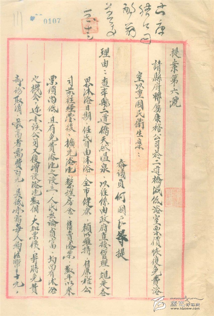 另一份舊檔案也有趣,這是一份由一名參議員提出的提案,內容是由于生活在康定的人、包括公務人員在內,因為收入少,生活困難。請求康定縣政府出面給經(jīng)營二道橋的“康裕公司”提出二道橋洗浴不收費,經(jīng)營方的虧空可以在其它經(jīng)營,如餐飲獲得的利潤中解決。參議會上還通過了這個提案,說是“原案所擬辦法尚屬可行,擬送請縣府轉飭康裕公司照辦”。這份提案再無下文,康裕公司是不是照辦了,不得而知,就是參議會是不是轉給了康定縣政府也不得而知。以今天的眼光看,這份提案有滑稽、有趣的一面,卻也有關注民生而十分無奈的一面。