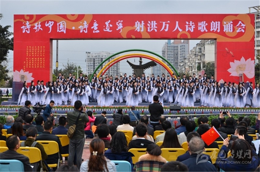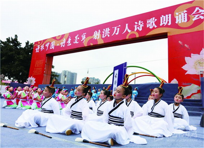據(jù)了解,本次活動是《詩刊》2016年度陳子昂詩歌獎(jiǎng)系列活動之一,參與人數(shù)之多、規(guī)模之大,在射洪縣尚屬首次?,F(xiàn)場由射洪中小學(xué)生和企事業(yè)單位組成的方陣和演出隊(duì)伍,以載歌載舞或配樂詩朗誦等形式登臺表演, 內(nèi)容以經(jīng)典詩詞為主,也有圍繞當(dāng)前中心工作而創(chuàng)作的新詩。這是文化的傳承,更是血脈的延續(xù)。參加詩歌朗誦會的最小的4歲,或許他們不懂文字背后的美,并不理解字里行間透露出的人生況味,但他們在射洪這樣的文學(xué)滋 養(yǎng)中出生、成長。