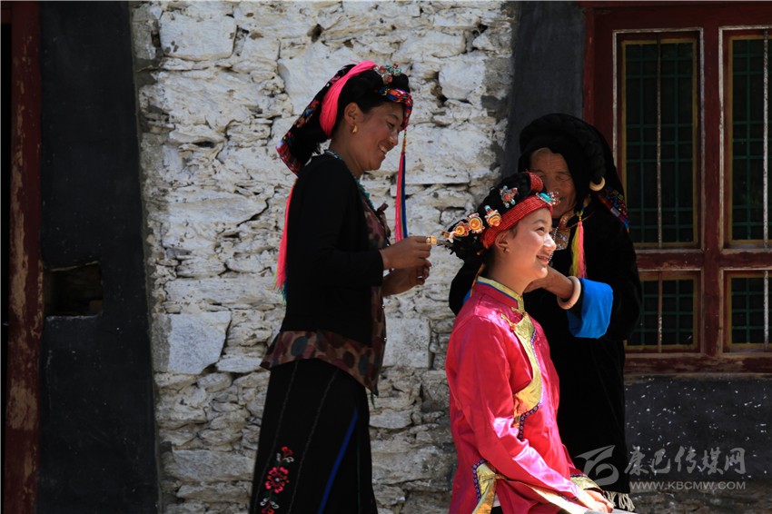 丹巴嘉絨藏族女子的成年禮一般以自然村落為單位,舉行的時間需請喇嘛或貢巴擇吉日,或在農(nóng)事有閑的時候。參加成年禮的成年女性人數(shù)不定,可集體、也可以單獨舉行,其原則是女子必須歲足17歲;若已足17歲,如遇農(nóng)事繁忙,也可適當(dāng)延期。