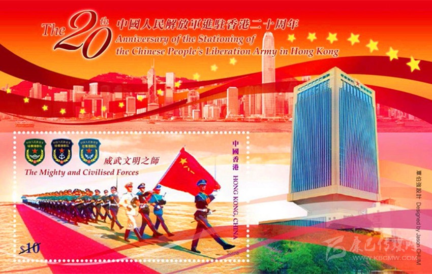 6月20日發(fā)行的《中國人民解放軍進駐香港二十周年》郵票。