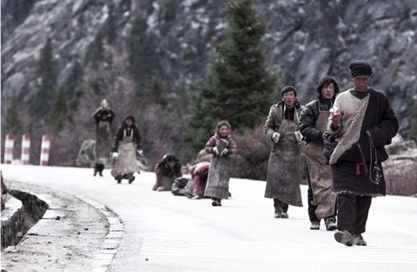 安靜的,用心走入影片,與親人一樣可敬可愛(ài)的藏人們圍爐席地而座,一碗接著一碗享用酥油茶和糌粑,細(xì)碎地說(shuō)些家常的話。探索他們的內(nèi)心世界,選擇與他們一起虔誠(chéng)朝圣。信仰,使他們變得更加善良、自律,并有著比一般人更強(qiáng)大的信念和毅力。年邁的爺爺為了自己年輕時(shí)的夢(mèng)想踏上朝圣之路;小女孩對(duì)前路充滿好奇而無(wú)所畏懼;孕婦期許美好未來(lái),更加執(zhí)著;屠夫放下屠刀,義無(wú)反顧的朝著圣地邁進(jìn)。在那處漫水的路面,我畏懼了,他們卻毫不猶豫地脫掉外套撲向水里,動(dòng)作敏捷,無(wú)所顧忌,一秉虔誠(chéng)的心讓人震撼。影片結(jié)束,我?guī)锥嚷錅I……