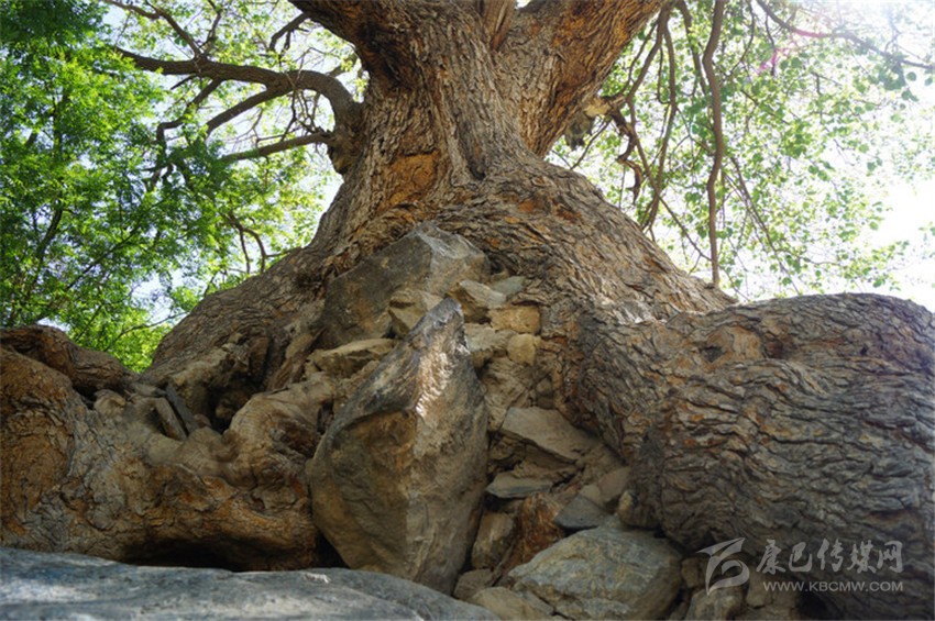 站在巴塘縣城夏邛鎮(zhèn)的廣場(chǎng)上,目光穿過鱗次櫛比的建筑上空,在東南方一角,遠(yuǎn)遠(yuǎn)就能看見一棵高大的桑樹沖破了城市的圍裹,直指蒼穹,在微風(fēng)中搖動(dòng)著嫩綠的枝葉。一位在廣場(chǎng)上搖動(dòng)轉(zhuǎn)金筒的老人告訴我,在那棵樹下,有一塊巨石,上面鐫刻有許多文字,因?yàn)槭^與樹共生共長在一起,人們?nèi)∽鳌肮派1敝烂惨虼顺蔀榱寺劽吞恋木包c(diǎn)之一。聽后,我怦然心動(dòng),乘著涼爽的晨風(fēng)我向著“古桑抱石”景點(diǎn)走去。