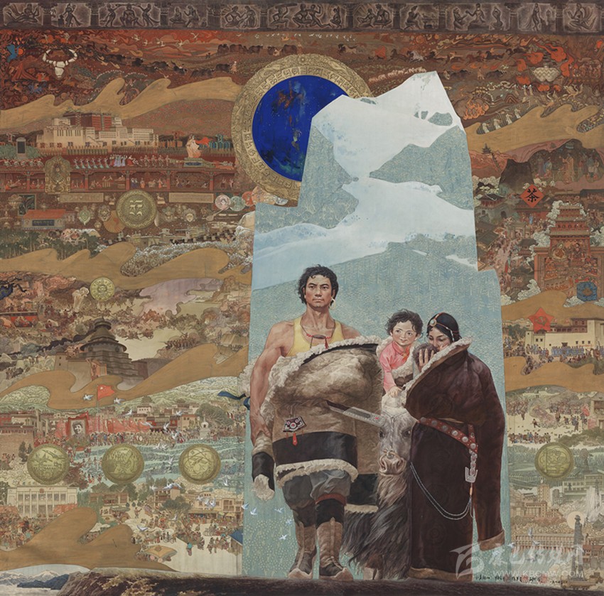 青藏高原有著曠遠(yuǎn)弘大的人文地理,有著神秘久遠(yuǎn)的宗教文化傳承,正是這蒼茫大地孕育了藏族人;正是這片極度追求審美體驗并把生活高度藝術(shù)化的疆域,滋養(yǎng)了西藏藝術(shù)。從早期的巖畫、旗幡畫、唐卡、壁畫,再到當(dāng)代的丹青重彩,無不生發(fā)于這片神奇高原,皆是中華民族文化寶庫中燦爛的牟尼寶珠。唐卡繪畫肇啟于松贊干布隆興之時,向南學(xué)習(xí)印度、尼泊爾布畫,往西受到犍陀羅藝術(shù)浸潤,向東融合唐、宋、明、清之審美,再集藏地宗教文化、民族審美熔為一爐,鑄就一千三百年唐卡繪畫之法脈。它不僅是獨具魅力的藏文化之血脈源流,更是各民族文化交融、和諧互生的典范,對世界藝術(shù)有著深遠(yuǎn)的影響。