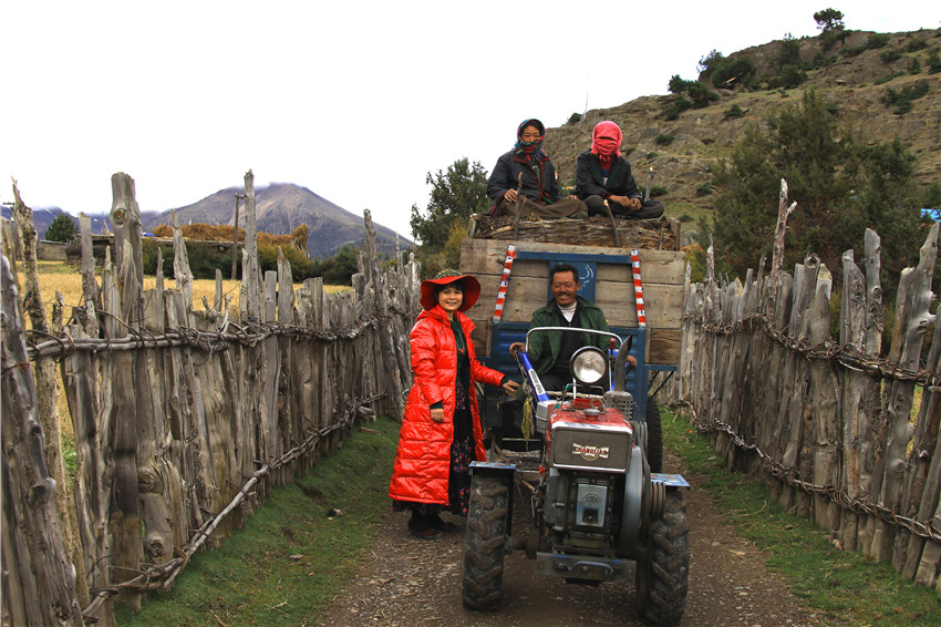 作者與然烏湖小島上的阿日村村民合影。