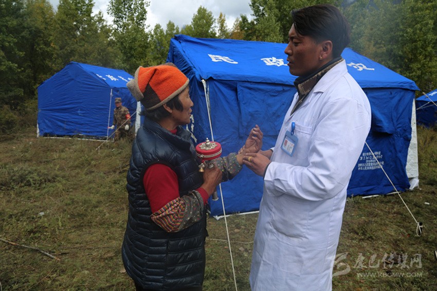 醫(yī)務人員為安置點群眾進行健康檢查。