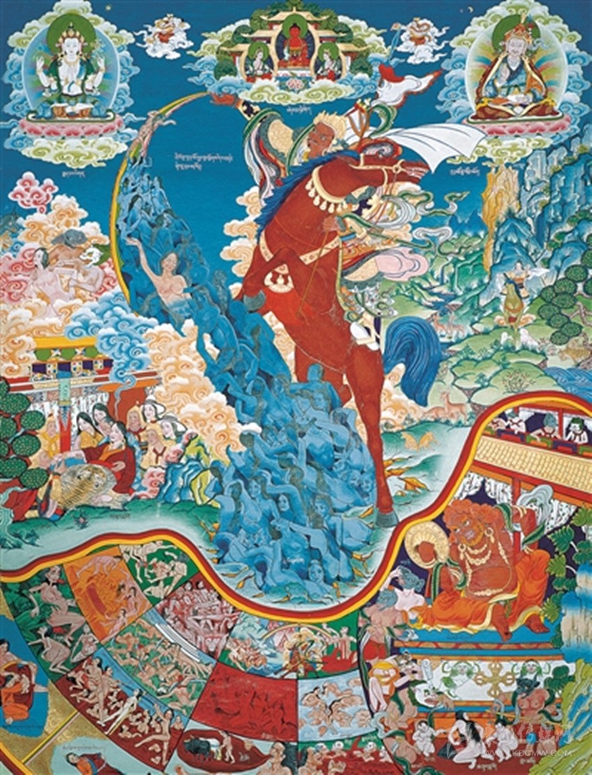 “仲唐”即格薩爾唐卡的產(chǎn)生、演變與發(fā)展,與《格薩爾》這部古老的史詩(shī)在藏族人民、主要是農(nóng)牧民之中流傳、演變與發(fā)展的歷史進(jìn)程是密切相聯(lián)系的?!陡袼_爾》唐卡產(chǎn)生、演變與發(fā)展的歷史,從一個(gè)側(cè)面,反映了《格薩爾》這部偉大的英雄史詩(shī)發(fā)展的過(guò)程,反映了它的興衰?!陡袼_爾》興,《格薩爾》唐卡興;反之亦然,《格薩爾》衰,《格薩爾》唐卡亦衰。