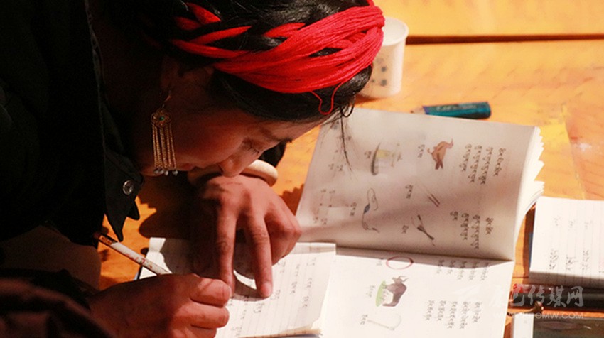 驅車回老家過新年,天已黑,推開家門,哇!我簡直不能相信自己的眼睛,我的家人都捧著書本在學習,有的在背誦,有的在書寫。最令我感動的是我媽媽,她拿著手電筒照著書本上的最基礎的藏文字母默讀。我情不自禁地豎起拇指朝他們嘖嘖稱贊。媽媽說:“我是學前教育班的,你姐姐她們已有三年級的文化。木雅溝的村民都在夜校學習,這趟你怕是找不到玩伴了?!?/p>