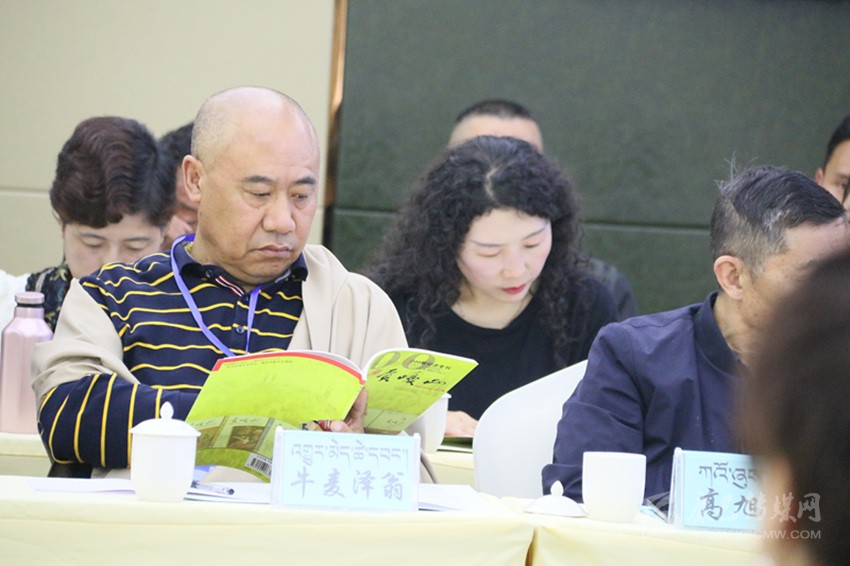 會(huì)議室正中的電子屏上,“貢嘎山期刊交流暨2019年藏漢文作家培訓(xùn)會(huì)”白色字體赫然入目。室內(nèi)最靠后的桌上,《貢嘎山》200期紀(jì)念???、《貢嘎山》第199期等藏漢文讀物有序擺放,吸引了不少“粉絲”當(dāng)場(chǎng)品讀。