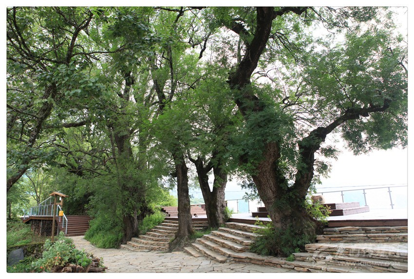 有欄桿的木質(zhì)棧道像一道城墻,沿山脊線(xiàn)而建,是觀(guān)光與休閑的好地方。