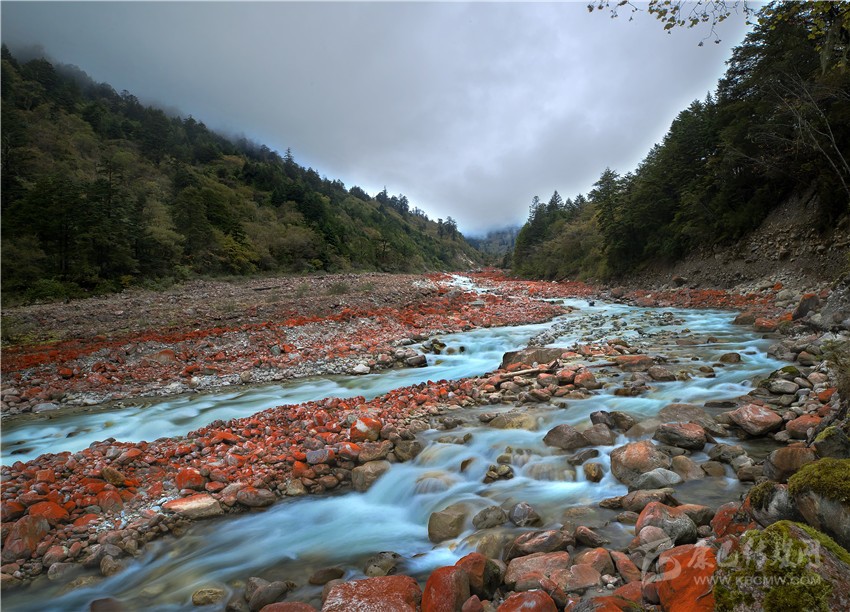 這里的景“色”是不可替代的,據說紅石移到其他地方之后,就變色了,石頭上面的紅色苔蘚也不復存在,讓人不得不感嘆海螺溝的神奇與幻妙。