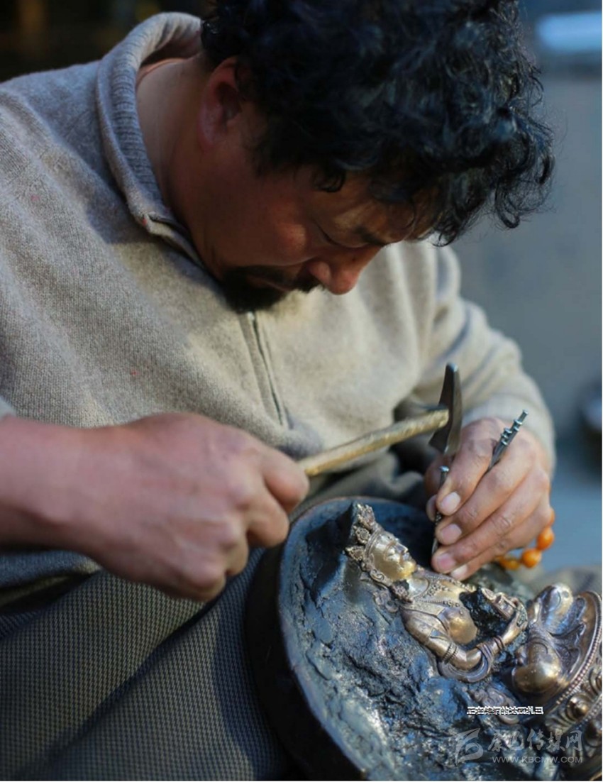 達瓦扎巴年輕、穩(wěn)重、活力,儼然一副小主人的模樣,用流利的漢語給我們介紹銅鑄技術,也充當我們和父親之間的翻譯。我們問達瓦扎巴麥宿銅鑄佛像與其他地區(qū)的最大差別在哪里,他滿是自豪回答:我們的鎏金銅技術,可以說是獨家絕活,也是內(nèi)地近乎失傳的古法工藝。有故事為證:二十多年前,因為只有父親一人會這門技術,佛像產(chǎn)量很小。一位常年在印度做古董佛像投資生意的麥宿人回到老家,發(fā)現(xiàn)自己輾轉收來的“古董”竟然出自夏雷尼瑪之手。原來因為工藝古樸精良,夏雷尼瑪制作的佛像被許多人冒充“古董”轉賣,竟然流到了印度。