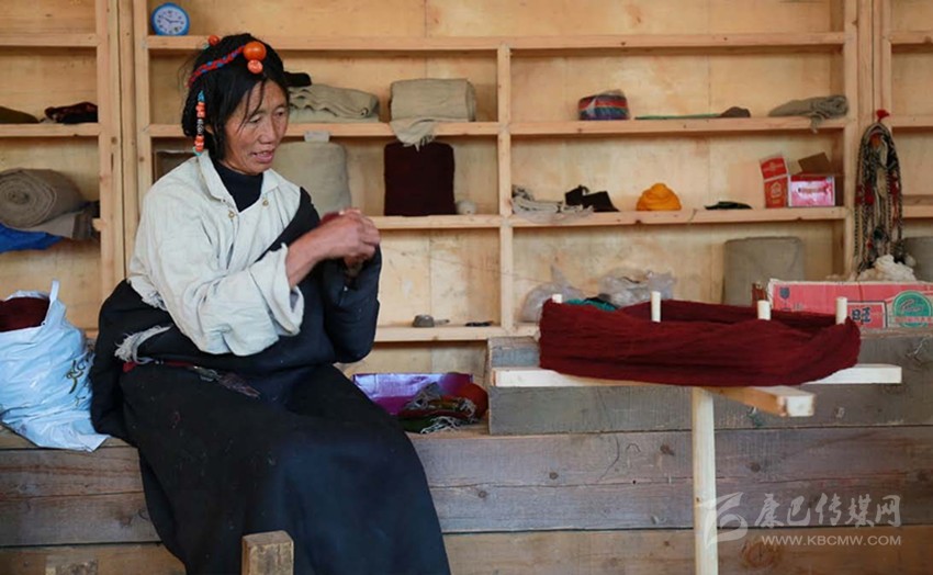 “庫”,這層細軟的底絨被表層粗糙的牦牛毛所覆蓋,且本身細長彎曲,無法用剪刀方便地剪下,故而只能手工采集。從每年春天采集牦牛、羊絨,到捻成線,到染成不同顏色,再到織成一匹布,整個過程全由扎西巴姆和她帶領的幾個藏族婦女手工完成,全部學會這門技術需要3—4年,現(xiàn)在麥宿只有4人全部掌握。但與這費力耗時的工藝形成殘酷對照的是,手工織物在機器快速生產(chǎn)的現(xiàn)代社會,市場經(jīng)營可謂舉步維艱。雖然工巧明系創(chuàng)立的平臺專門收購編織班做出來的產(chǎn)品,但購買的人并不多,編織班創(chuàng)建至今,所得收益只夠勉強維持平衡。