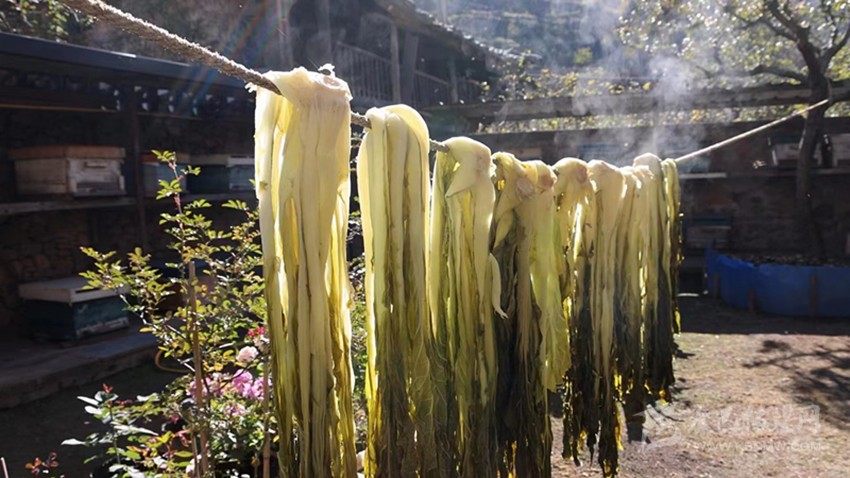 “自給自足”的家庭作坊式生產(chǎn),讓鹽白菜顯得尤為珍貴,這種風(fēng)味獨(dú)特的食品已經(jīng)成為化林坪村的“孤品”,掌握古法腌制晾曬技術(shù)的人更是寥寥無幾。