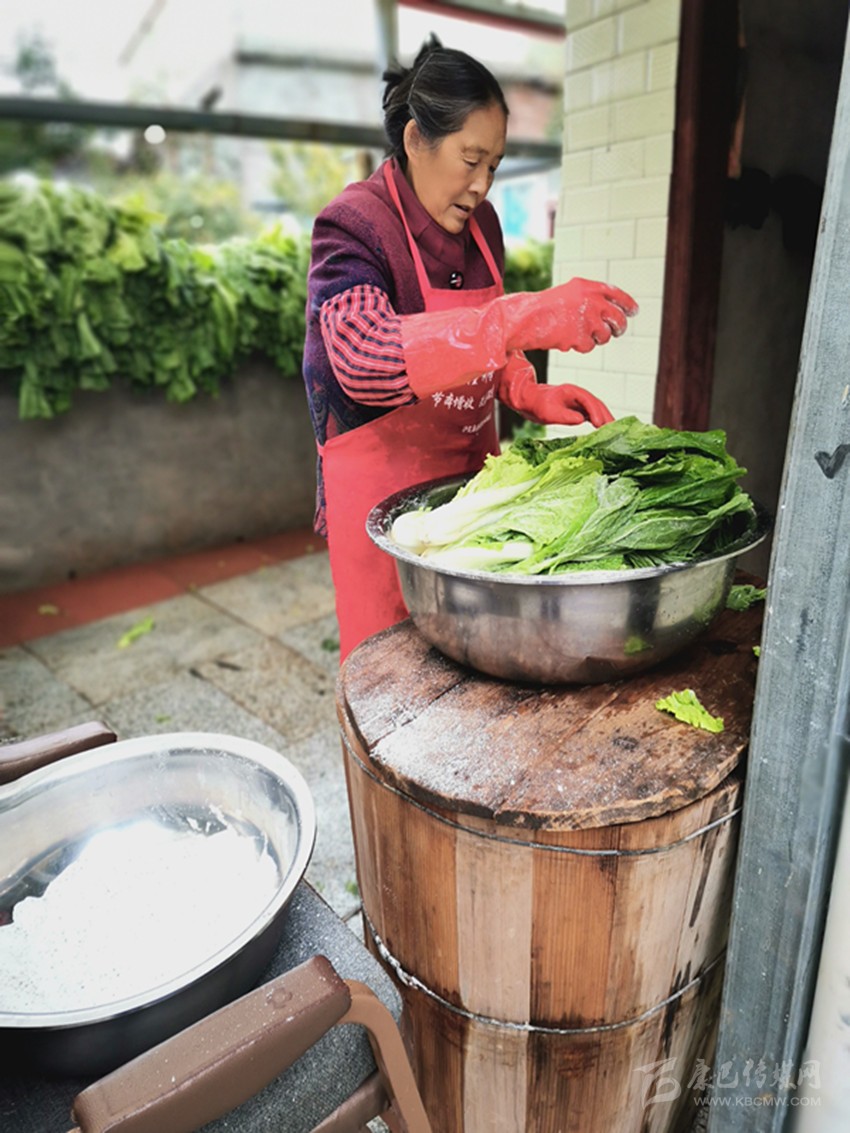 100多年間,周氏家族代代相傳的鹽白菜制作技藝,也被傳至其鄰居張恒芬的手上。這個(gè)聞著隔壁鹽白菜香味長大的村里人,如今已是周振良每年制作鹽白菜時(shí)的好幫手,她在推廣這道山珍美味的同時(shí),也致力于挖掘其背后豐富的文化傳承。