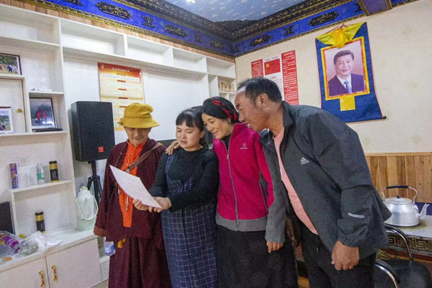 由于沒有到蟲草季節(jié),村民說沒有什么能拿得出手送我的,說是等挖了蟲草給我寄一點(diǎn),我受了這么大的苦難,要好好補(bǔ)補(bǔ)身體。村支書澤下,簡(jiǎn)單地給大家說了我即將離開,說了我在醫(yī)院住了四個(gè)多月,說了我這兩年為大家修房子、募捐、結(jié)對(duì)子等等。我站在哈巴村活動(dòng)中心門口,每個(gè)人都排著隊(duì)為我獻(xiàn)著哈達(dá),邊為我戴上邊哭,我也忍不住哭了起來。哈達(dá)實(shí)在太多了,我也帶不走,就放在了村上。有一個(gè)老奶奶,叫澤仁拉呷,是我結(jié)對(duì)子的貧困戶,她揣著一張100塊錢,一定要給我,叫我收下。100塊錢,對(duì)于我來說并不多,對(duì)于村里的貧困戶來說,那是要賣好多斤土豆才能賣到的錢,我當(dāng)然沒有收,拿給她了,我看到她一直哭,心里酸酸的。是的,短暫的兩年駐村時(shí)光,為他們做的太少太少了,他們卻把我當(dāng)親人一樣,記掛著,關(guān)心著,心疼著。