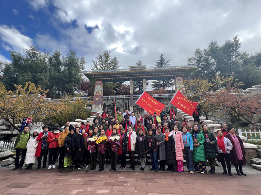 10月27日,原62軍暨南下干部后代們來(lái)到位于康定新城情歌公園的“雪域不會(huì)忘記——康定和平解放暨南下干部入康紀(jì)念浮雕墻”前參觀瞻仰。