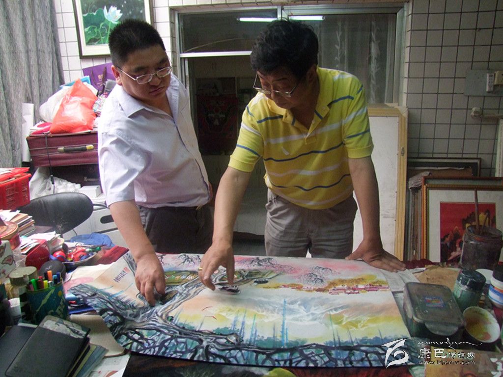 得知記者在《成都日報》學習,文光裕先生便盛情相邀記者去他家里做客。7月9日,記者到雙流采訪了文光裕先生。文光裕先生詼諧幽默,學說逗唱、琴棋書畫樣樣都懂。他具有平和的心態(tài),所以看起來特別年輕,記者見到他的時候,很難把古稀老人與他聯(lián)系起來。人未見,笑聲先到,文光裕先生爽朗的笑聲感染了記者。他正在創(chuàng)作新舊康定對比繪畫作品。雄奇險峻的郭達山下,湍急的河水,密密麻麻的民房,這就是他記憶中上個世紀50年代的康定,雖然長期居住在內地,但文光裕先生思鄉(xiāng)心切,用繪畫的形式來寄托對家鄉(xiāng)的思念。