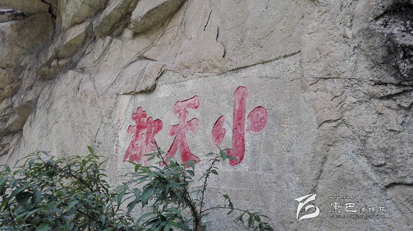 前些年,康定在此處修建水電站及公路,大量石塊隨意處置,沿路堆下,“小天都”三字幾被覆蓋。據(jù)當(dāng)?shù)厝苏f(shuō),以前此三字高懸半空,現(xiàn)已可以攀巖而上。