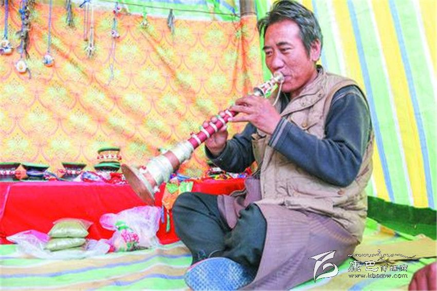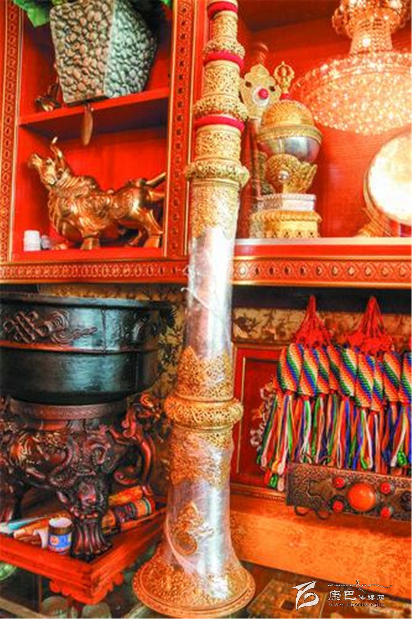 在河坡一代,像根秋丹貞、伍金這樣的手工藝人還有很多很多。其麥一家和根秋丹貞家一樣,也是主要制作佛器,在他的記憶里,爺爺、父親、叔叔、伯伯都是制作藝人,而自己家到底有多長(zhǎng)的制作歷史,連他都說不清楚。51歲的扎西次仁這幾天有點(diǎn)忙,聽說噶陀寺最近要舉行法會(huì),而以法器制作為主的他,早早的就在噶陀寺的臨時(shí)商點(diǎn)支起了“小賣部”,在這里叫賣自己家的精品法器,嘎烏、計(jì)數(shù)器、法號(hào)等等讓記者看得應(yīng)接不暇。