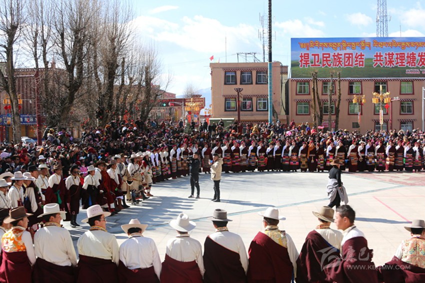 在藏歷火雞新年期間,理塘縣精心組織了以“勒通古鎮(zhèn)·祥和新春”為主題的群眾文藝匯演,分為“吉祥頌”“吉祥韻”“吉祥贊”“吉祥魂”四大篇章。其中“吉祥頌”和“吉祥魂”兩個(gè)篇章以“協(xié)巴”和“理塘鍋莊”兩個(gè)省、州級非物文化遺產(chǎn)展演,豐富了理塘廣大干部群眾的文化生活。他們歡聚一起,處處歡聲笑語,一派祥和喜慶的景象。