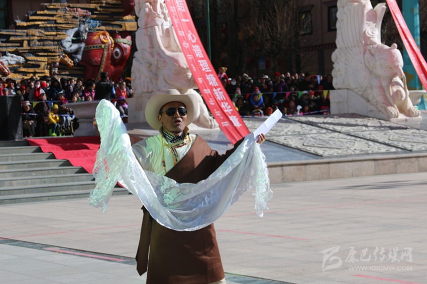吉祥頌,藏語稱為“協(xié)巴”,是州級非物質(zhì)文化遺產(chǎn)之一?!皡f(xié)巴”在藏族民間生活中占有重要的地位,尤其在喜慶活動(dòng)上,是一項(xiàng)不可或缺的重要儀式。州級非物質(zhì)文化遺產(chǎn)傳承人——高城鎮(zhèn)車馬村的翁堆老人手捧潔白的哈達(dá),為觀眾表演了《協(xié)巴——中國夢、理塘夢》,展現(xiàn)了時(shí)代變遷中,“吉祥頌”這一民間藝術(shù)在思想內(nèi)容和藝術(shù)手法的創(chuàng)新之美。