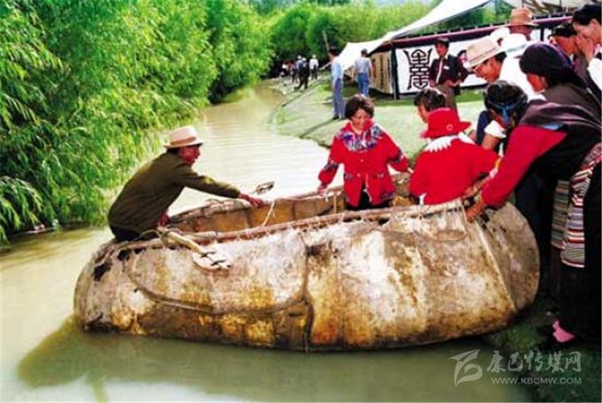 近代牛皮船側(cè)面看是梯形的,下大上小,用4張牛皮縫制,船底面積比早期船大一倍,一只船一次約載七八個(gè)人。牛皮船可靈活組合,如果乘客人數(shù)較多又不愿分開(kāi)過(guò)江河,也可把幾只牛皮船捆綁在一起,這樣人和東西就可以一起過(guò)江了。當(dāng)然,這時(shí)候船夫也需要添幾個(gè)幫手。一個(gè)牛皮船只有數(shù)十斤重,一個(gè)人背著還可以走遠(yuǎn)路。不用時(shí)則支在駐地附近晾干。至今在雅魯藏布江和拉薩河上還能見(jiàn)到牛皮船的影子,在偏遠(yuǎn)的鄉(xiāng)村,只要有河,牛皮船仍然是人們渡河的工具。