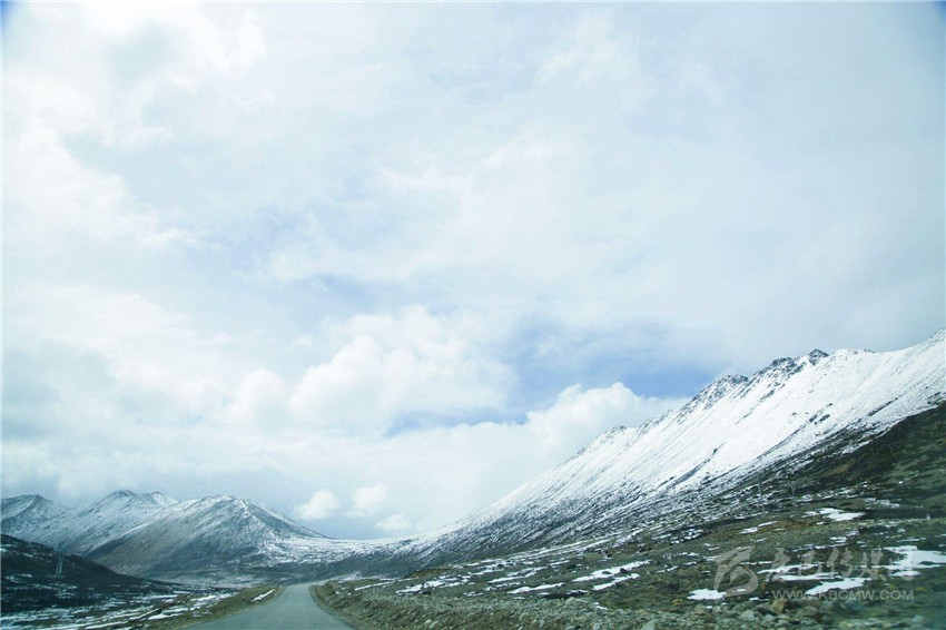 經(jīng)過曲曲折折的盤旋上升,快到埡口是路變得筆直如一道弧線。遠遠看見那個高聳的藏式塔,五顏六色的風(fēng)馬旗,以及停靠的許多車輛。自然,少不了觀景的游客。