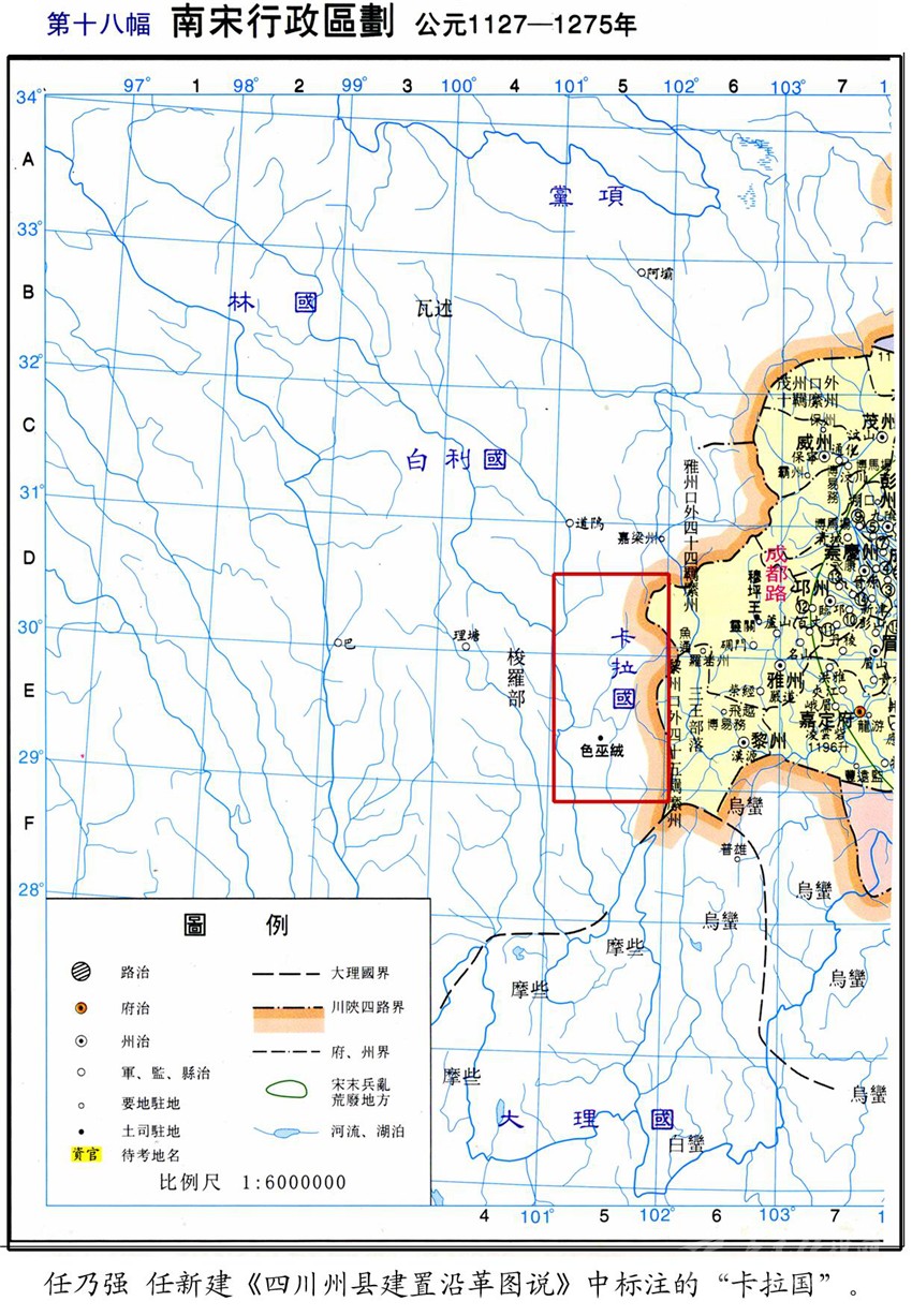 今屬康定縣的木雅,又分為上木雅和下木雅。下木雅的色烏絨地方,是木雅王曾住過的地方之一。民間又稱住在這里的王為“西吳甲布”(即“西吳王”),進(jìn)而又附會出個“西吳國”來。從木雅貢嘎西邊那條叫色烏絨的山溝往南到打箭爐,正如傳說的那樣,早年一般要走三天?!对贰酚小昂任帷钡挠涊d,“喝吾”“色烏”都是藏語的音譯,藏語“絨”為山溝之意,指的就是這個色烏絨。元世祖忽必烈征滇,沿大渡河、金沙江而進(jìn),得到沿途部落首領(lǐng)的大力支持。長河(大渡河)西的“西吳王”自然也不例外。所以在至元四年(公元1267年)“冬十月壬戌,魚通巖州等到處達(dá)魯花赤李福,招諭西番諸族酋長以其民入附,以阿奴版的哥等為喝吾等處總管,并授璽書及金銀符?!钡玫缴w有皇帝大印(玉璽)文書和金銀符,朝廷正式任命為“喝吾”總管的酋長(木雅王)阿奴版的哥,之后從色烏絨遷到打煎爐,不僅成為朝廷認(rèn)可的“長河西土官”,還作了“四川分省右丞”。我們是否可以判定,“木雅王”遷爐的時間應(yīng)在至元四年(公元1267年)之后?1267年距今740多年,以此推算,如前文所說:今天西爐(康定城)的歷史,大約為700年!再者,若從宋代的“卡拉國”算起,說“明正”歷四十二代,不能說沒有一點(diǎn)來頭。