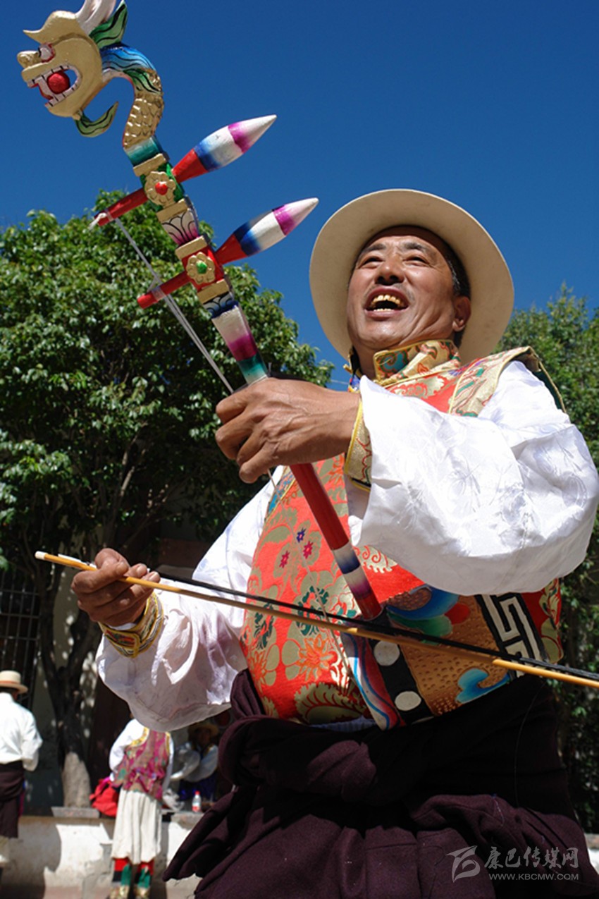 八歲時,就從外婆那里學會了拉“胡幾”,拉得不好,鄰居們笑:“咿咿呀呀的,像驢子在叫”。人們在田間地角跳弦子時,他夾在圈子里“臊堂子”調(diào)皮,后來便跟著大人跳,跳著跳著就學會了。有些動作不標準,外婆和母親就會笑著糾正。1972年,縣上的“毛澤東思想文藝宣傳隊”選中了剛滿十四歲的他,在“文革”中后期鋪天蓋地的運動中,他們上山下鄉(xiāng)進軍營送文化,弦子舞技得到強化,藏二胡就是在這期間越拉越好的。那時候糧食還沒有過關,公社分配的工分又重,家里的日子過得很艱難。經(jīng)常跟宣傳隊唱唱跳跳,可以不做那些繁重的農(nóng)活了,他還暗地里偷偷慶幸過?!拔母铩苯Y束后,縣上成立了業(yè)余弦子隊,他自然也在其中,這時,他已經(jīng)能記住二百多首弦子詞曲了。西藏恢復雪頓節(jié)那年,應該是1986年吧,他們又跳到了圣地拉薩,受到了西藏各地官員和群眾的歡迎??途永_的巴塘人在雪頓節(jié)盛典上看到巴塘弦子,流下了激動的淚水,很多人過來跟他們“打招呼”,問候家鄉(xiāng)人。跳弦子五十多年,去拉薩應該是最難忘的事情了。“阿幾拉沖!說拉薩道拉薩,拉薩建在海面上。”這是小時候外婆教他唱的。和所有的藏族一樣,他從小就向往那塊圣地。八十年代交通極其不方便,去成都都要走整整四天,去拉薩多難啊,所以村里人都很羨慕他們弦子隊。他還記得,在向布達拉宮虔身朝拜的那一刻,他流下了感動和幸福的淚水。