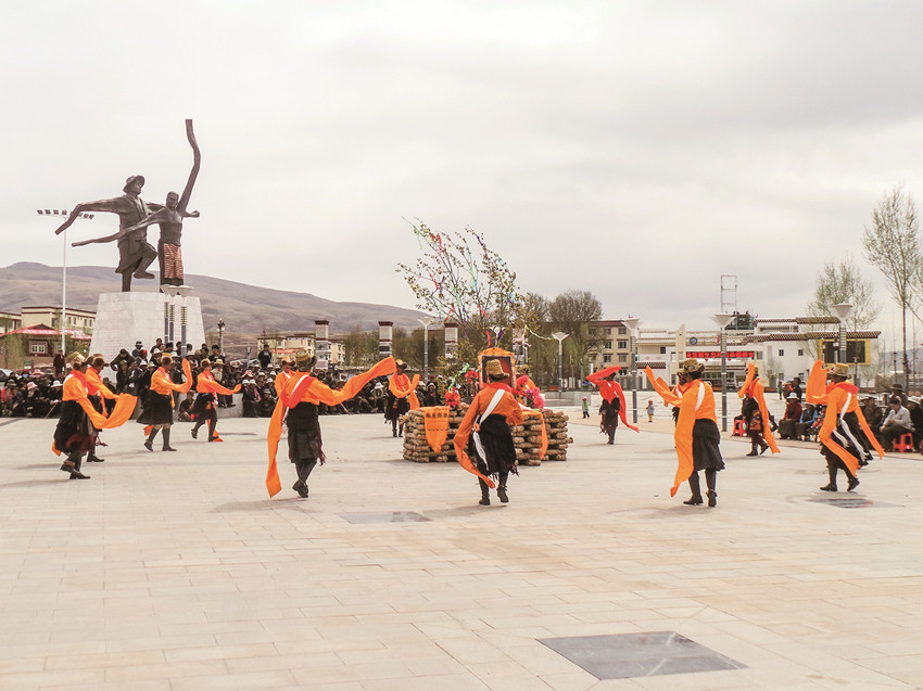座落在雅礱江畔的甘孜縣,春天是十分美麗的,當(dāng)江水解除冰凍,大山披綠的時(shí)候,會(huì)聽到滿山的布谷鳥鳴唱,草原上鮮花盛開。踢踏舞動(dòng)的銅鈴聲極像草原吟唱的歌喉,讓人聞之心醉,醉在那走向春天的踢踏。