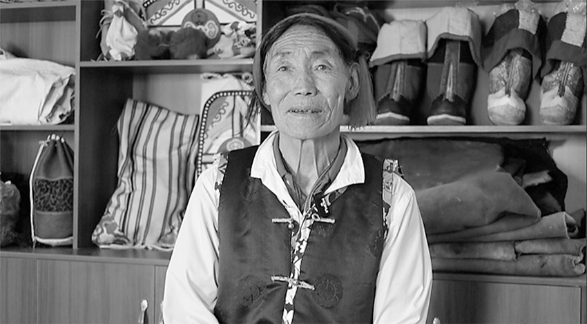 其父手巧心靈,為了養(yǎng)家,將漢地工藝融入本土傳統(tǒng)的皮革制造技藝中,一時間,紅牛皮實用功能不僅不減,還極具美感裝飾功能。十余歲起,舊波開始跟著父親學(xué)習(xí)紅牛皮及多種皮具的制作技藝。