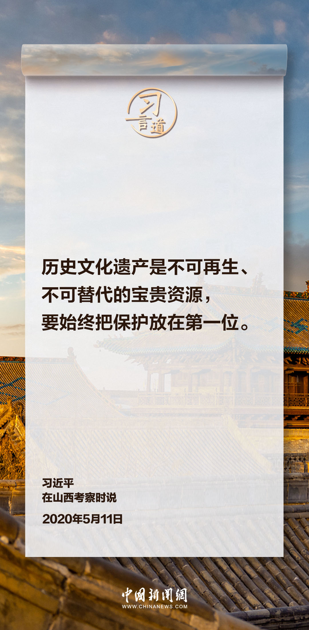 歷史文化遺產(chǎn)是不可再生、不可替代的寶貴資源。一直以來,習近平總書記高度重視文物保護利用和文化遺產(chǎn)保護傳承,強調(diào)守護好前人留給我們的寶貴財富。