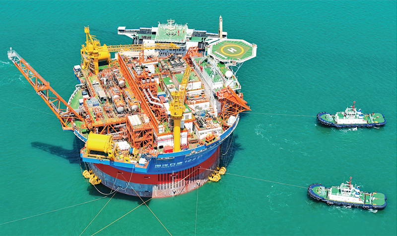 “??惶?hào)”,是亞洲首艘圓筒型浮式生產(chǎn)儲(chǔ)卸油裝置。該裝置集原油生產(chǎn)、存儲(chǔ)、外輸?shù)裙δ苡谝惑w,被網(wǎng)友們昵稱(chēng)為“超級(jí)能源碗”,也是完全由我國(guó)自主設(shè)計(jì)建造的海上油氣加工廠。圖為2024年5月12日,“海葵一號(hào)”從中國(guó)海油青島國(guó)際化高端裝備制造基地離港啟運(yùn)。 人民圖片 張進(jìn)剛/攝