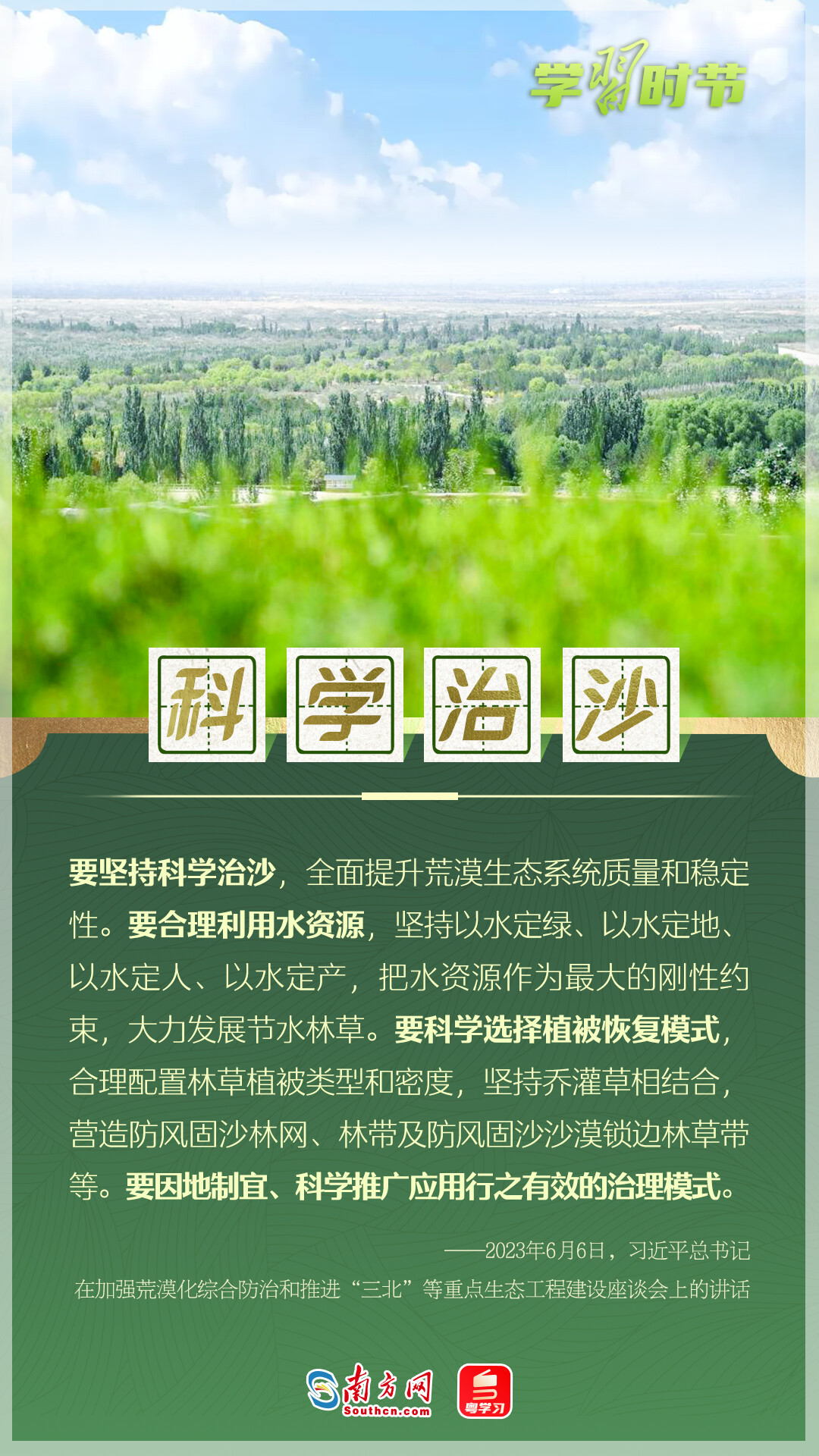 習(xí)近平總書記高度重視荒漠化防治工作,深入多地調(diào)研,多次作出重要指示。在習(xí)近平生態(tài)文明思想指引下,中國(guó)防治荒漠化成效顯著。讓我們一起從總書記的重要論述里學(xué)習(xí)領(lǐng)悟,堅(jiān)定走好荒漠化防治之路。