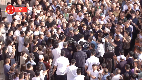 ??6月19日傍晚時分,寧夏銀川市金鳳區(qū)長城花園社區(qū)廣場,習近平總書記在這里考察即將結束時,居民們依依不舍,紛紛涌上前去,圍繞著總書記鼓掌歡呼,爭相與總書記握手。