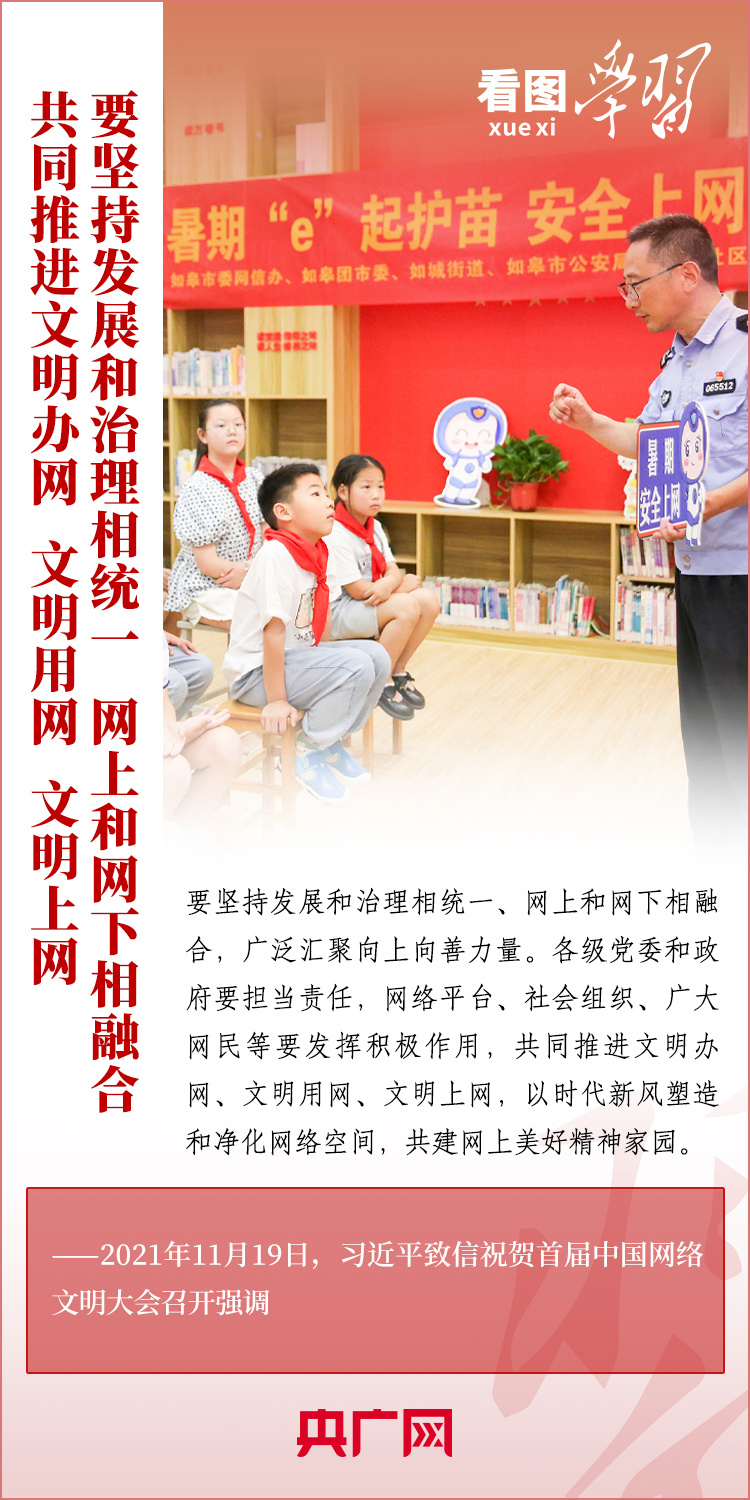 “堅(jiān)持發(fā)展和治理相統(tǒng)一、網(wǎng)上和網(wǎng)下相融合,廣泛匯聚向上向善力量”“共建網(wǎng)上美好精神家園”。習(xí)近平總書(shū)記格外重視網(wǎng)絡(luò)空間這一億萬(wàn)民眾共同精神家園的建設(shè),圍繞網(wǎng)絡(luò)文化和網(wǎng)絡(luò)強(qiáng)國(guó)建設(shè)作出了一系列重要深刻論述。