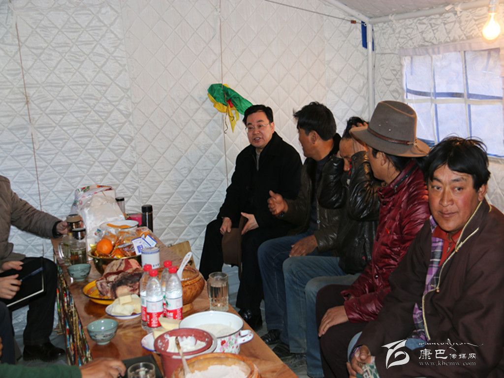 魚子西村緊鄰康定“11·22”6.3級地震震中,在此次地震中農(nóng)房受到不同程度的破壞。來到魚子西三村,鮮紅的黨旗高高飄揚在災(zāi)區(qū)上空,成為災(zāi)區(qū)人民的希望,成為災(zāi)區(qū)人民奮然前行的方向。在溫暖的棉布帳篷里,胡昌升聽取了瓦澤鄉(xiāng)黨委、政府和魚子西一村、二村、三村抗震救災(zāi)和過渡安置工作匯報。