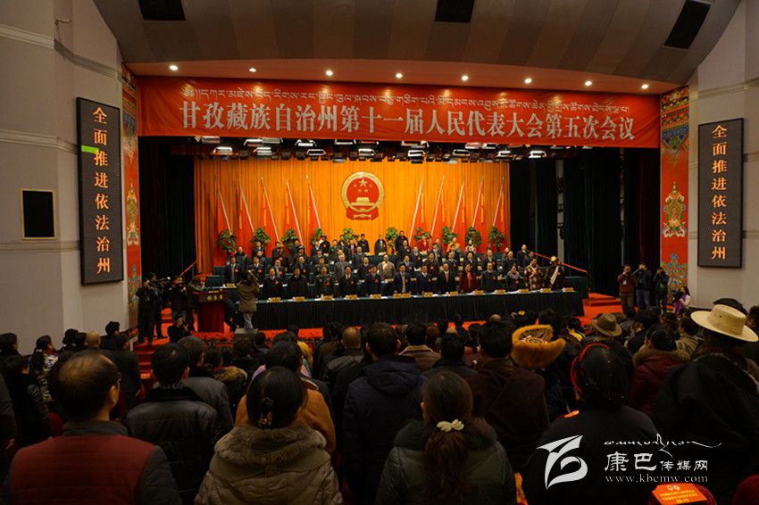 上午10時(shí)20分,劉成鳴宣布甘孜州第十一屆人民代表大會(huì)第五次會(huì)議開幕。全體起立,雄壯的中華人民共和國國歌在會(huì)場(chǎng)內(nèi)唱響。