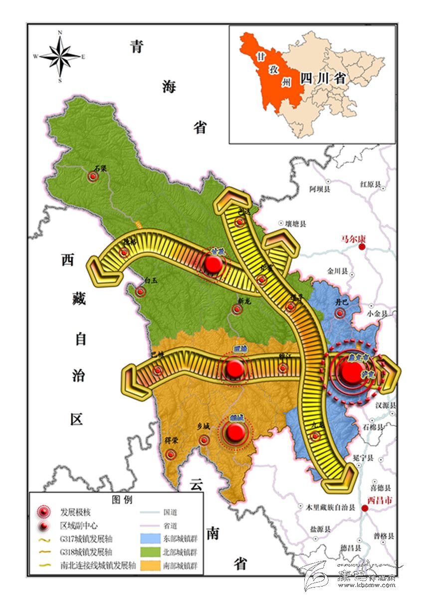 四向拓展區(qū)域發(fā)展戰(zhàn)略空間。向東加強與成都經(jīng)濟區(qū)在旅游、工業(yè)、交通等方面的合作,共同推動“飛地”產(chǎn)業(yè)園區(qū)建設(shè),暢通鐵路、高速等快速通道,主動承接成都經(jīng)濟區(qū)輻射,加快融入四川主市場。向南聯(lián)動滇西北和攀西經(jīng)濟區(qū)發(fā)展,共同推動大香格里拉旅游經(jīng)濟圈建設(shè),共同打造中國最大水電基地。向西全面加強與西藏在旅游、維穩(wěn)、交通、物流、能源等領(lǐng)域的合作,共同打造穩(wěn)藏興藏的戰(zhàn)略腹地。向北加強與甘肅、青海等地合作,共同打通川甘青交通大通道,積極融入三江源生態(tài)經(jīng)濟區(qū),推動建設(shè)川甘青結(jié)合部藏區(qū)綜合發(fā)展試驗區(qū)。
