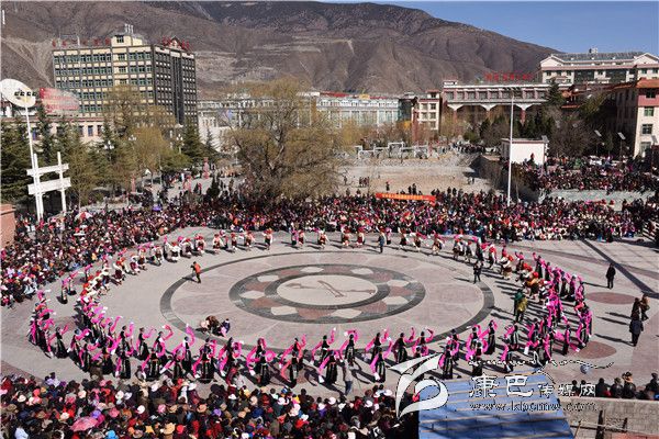 本網(wǎng)訊 (羅凌 志瑪 /文 王娟 多吉澤仁/圖)2月10日正值大年初三,高原江南巴塘陽光燦爛,喜慶祥和。該縣夏邛鎮(zhèn)13個行政村組成8個表演隊,1000余名農(nóng)民演員穿著節(jié)日的盛裝,到中山廣場參加“巴塘縣(夏邛鎮(zhèn))2016年迎新春暨藏歷火猴年原生態(tài)非遺文化展演”活動。