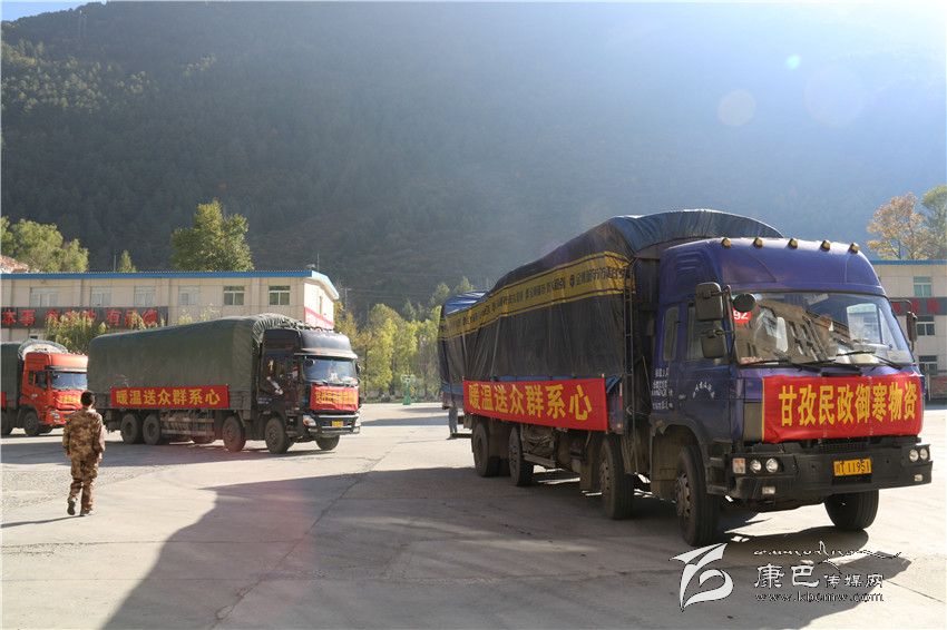 本網(wǎng)訊(記者 鄧安華 文/圖)寒潮來(lái)襲,隆冬將至。黨中央、國(guó)務(wù)院和省、州領(lǐng)導(dǎo)時(shí)刻牽掛著受災(zāi)群眾和困難群眾的冷暖安危。10月31日上午,康定兵站的廣場(chǎng)上一排排滿載御寒物資的大貨車整裝待發(fā),按照省委省政府的統(tǒng)一部署和州委、州政府的安排,我州在此舉行向全州建檔立卡貧困群眾、受災(zāi)群眾和其他困難群眾發(fā)送御寒物資啟運(yùn)儀式。據(jù)悉,我州本次向理塘、石渠、色達(dá)、巴塘、九龍等15個(gè)縣發(fā)放15車御寒棉被共計(jì)45300床。