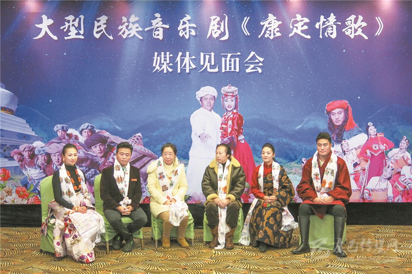 1月15日,大型民族音樂劇《康定情歌》媒體見面會在成都沙灣會展中心舉行。該劇總導(dǎo)演關(guān)大心,編劇張勇,藝術(shù)總監(jiān)益呷率主演四郎貢布、戴宛蕓、赤勒旦真等主創(chuàng)人員及部分演員整齊亮相。省文化廳劇目工作室主任、國家一級編劇丁鳴、州委宣傳部、州精神文明辦和州民族歌舞團相關(guān)負責(zé)人參加此次媒體見面會。