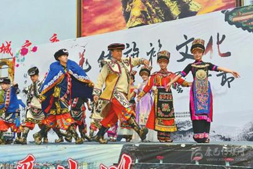 4月29日,綿陽市北川羌族自治縣巴拿恰街文化廣場(chǎng),當(dāng)?shù)厝罕娚碇褡宸b走秀,歡度“五一”。 寇元林 攝