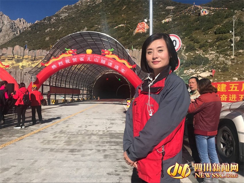四川電視臺記者祝莉娟從雀兒山隧道通車現(xiàn)場為中央電視臺新聞?lì)l道《還看今朝·四川篇》發(fā)回直播報(bào)道