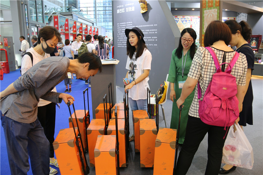 318線精品旅游線路圖、創(chuàng)意拉桿箱;原本一些靜態(tài)的物品被潮流的設計之后,在“藝?甘孜”展館門口屢屢賣到脫銷。此次文博會,甘孜州全境文化產業(yè)發(fā)展公司順應旅游市場推出了一系列“接地氣”的文化創(chuàng)意產品。通過傳統(tǒng)文化和日常生活的無縫銜接,旅游、文物在老百姓心中變得更加生動有趣、接地氣。該公司運營總監(jiān)梅小恩說:“由于多次參加布展,考慮到消費者購物后,攜帶很不方便。于是前期公司就設計制成這款具有康巴文化的文創(chuàng)產品IP形象,雖然是一款紙箱,但款式都以真皮箱相仿,設計理念是康巴漢子騎著摩托車奔馳在318線上,這一理念得到了市民認同,前來購買的人很多,消量特別好。下步將立馬上線,推出皮箱系列,到今天為止訂單都很多了。”