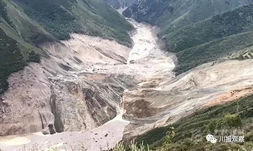 另據(jù)四川省防指和四川省水利廳工作組反饋:堰塞湖所在江段長(zhǎng)約10.6公里,河谷為“V”形峽谷,兩側(cè)岸坡坡度20~60°,河谷結(jié)構(gòu)為斜向谷。河道上游彎曲、下游稍順直,水流急,局部稍緩。初步統(tǒng)計(jì),該段江段共有滑坡10處,崩塌3處,泥石流溝8條。其中有2處大型滑坡,即則學(xué)滑坡和仁達(dá)滑坡。