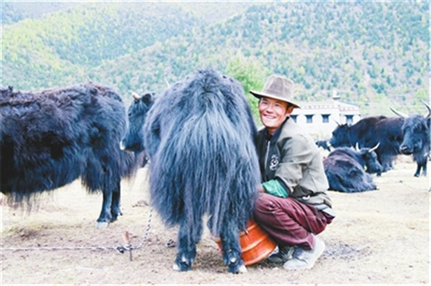 鄧珠澤榮一家多年前從道孚縣八美鎮(zhèn)移居到各卡鄉(xiāng),因?yàn)樵诖迳蠜]有分到土地,家里的開銷都靠政府的福利政策和挖蟲草、采松茸的收入,只能勉強(qiáng)度日。去年,該縣康巴渠德農(nóng)牧事業(yè)發(fā)展合作社與該村達(dá)成了定點(diǎn)收購牛奶的協(xié)議,鄧珠澤榮依靠政策的支持成為了一名養(yǎng)牛戶。2017年,他養(yǎng)了50多頭奶牛。光是賣奶制品的收入就有近十萬元;村合作社的5畝高原草莓,產(chǎn)值近12萬元,他家從中獲得了幾千元的勞務(wù)收入和分紅收入。有了這兩項(xiàng)收入,鄧珠澤榮一家迅速由特困戶過上了小康生活。