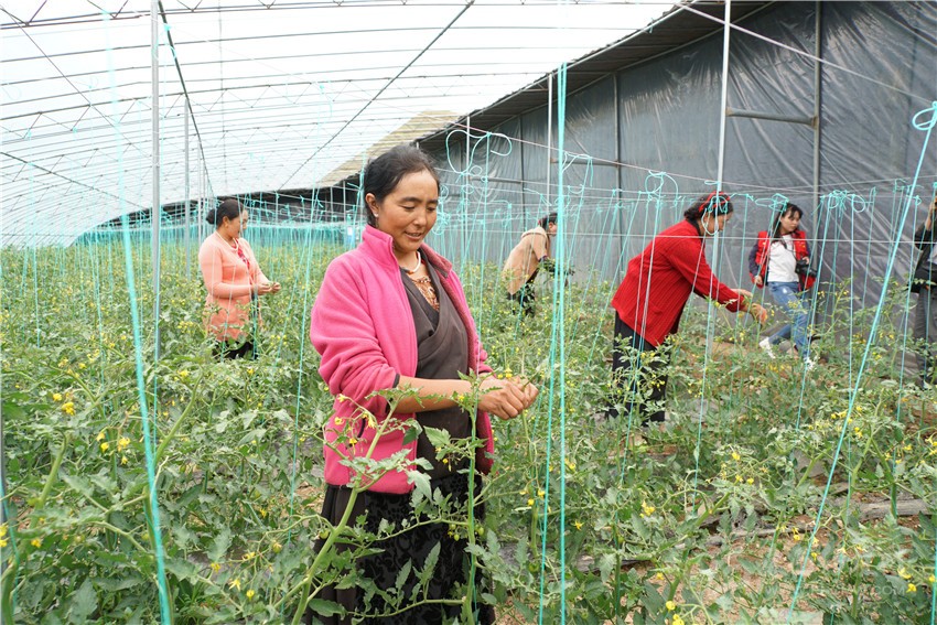高原現(xiàn)代生態(tài)產(chǎn)業(yè)園勞作的當(dāng)?shù)卮迕瘛?/span> 王明陽 攝