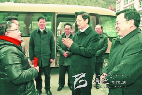王懷臣在康定縣爐城鎮(zhèn)清泉村慰問(wèn)“三老干部”駱志珍